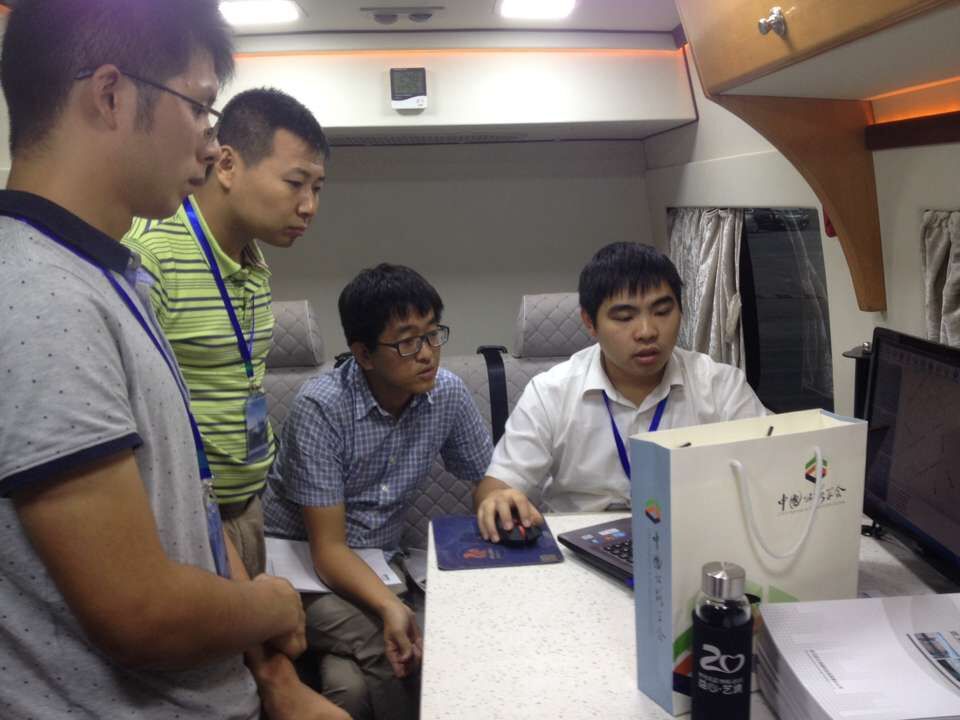 圖為卓越科技工作工作人員為客戶介紹公路路況快速三維檢測(cè)系統(tǒng)