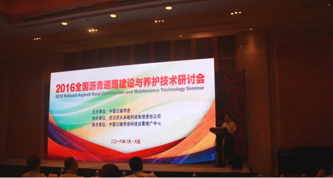 8月25日,2016全國(guó)瀝青道路建設(shè)與養(yǎng)護(hù)技術(shù)研討會(huì)在遼寧省大連市舉行。此次會(huì)議由中國(guó)公路學(xué)會(huì)主辦,武漢武大卓越科技有限責(zé)任公司協(xié)辦,中國(guó)公路學(xué)會(huì)科技成果推廣中心承辦。交通運(yùn)輸部公路局養(yǎng)護(hù)保通處處長(zhǎng)王松波、交通運(yùn)輸部路網(wǎng)中心副處長(zhǎng)虞麗云、交通運(yùn)輸部公路科學(xué)研究院交通公路工程研究中心主任徐劍、中國(guó)公路學(xué)會(huì)副秘書長(zhǎng)巨榮云、武漢武大卓越科技有限責(zé)任公司總工程師林紅等多位行業(yè)專家以及300余名業(yè)內(nèi)人士參加了此次研討會(huì)。會(huì)議由中國(guó)公路學(xué)會(huì)副秘書長(zhǎng)巨榮云主持,其中,武大卓越董事長(zhǎng)兼總裁曹民先生發(fā)表致辭。