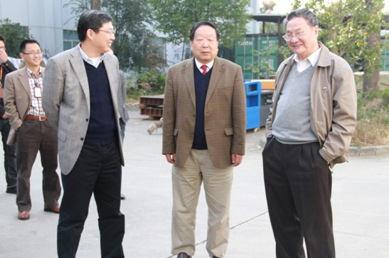 ?????院士參觀激光動(dòng)態(tài)彎沉測(cè)量系統(tǒng)(從左至右公司首席科學(xué)家、武漢大學(xué)常務(wù)副校長李清泉先生陪同中國工程院和中國科學(xué)院雙院士李德仁先生、中國科學(xué)院院士許厚澤先生)