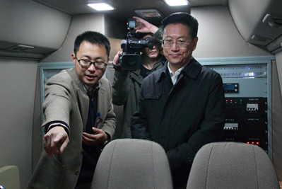 卓越科技董事長曹民先生向楊松主席介紹智能道路檢測系統(tǒng)