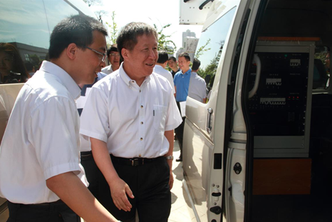 卓越科技副總裁張德津博士向曹健林副部長(zhǎng)一行介紹智能道路檢測(cè)系統(tǒng)